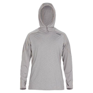 Desert sun to jungle heat, the NRS MenM-^Rs Silkweight Hoodie delivers full-coverage sun protection when youM-^Rre too busyM-^Wor reef-awareM-^Wto slather on the sunscreen. Wear it running, surfing, rowing, bushwacking or wrestling with the camp kitchen. Made with brrr° Pro fabric, which features advanced wicking technology for all-day cooling comfort and antimicrobial properties to prevent odors. Thumbholes extend sun protection to the tops of your hands. Watch ports keep you on (river) time, without exposing skin. Seam placement avoids high-friction zones, enhancing athletic performance. Regular fit for casual comfort whether worn alone, under a PFD or as a base layer for technical outerwear. Slightly dropped rear hem provides additional coverage. Features a small loop and plastic button for securing the hood around the face. Provides UPF 50+ sun protection.