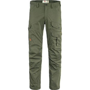 Durable trekking trousers with technical features, made from wind- and water-resistant G-1000. The model is based on our best-selling Vidda Pro but has improved ventilation options and a slimmer fit with stretch fabric in crotch so still has great freedom of movement . The buttoned strap adjustments at the leg endings can be removed and there are numerous practical pockets and details – such as a knife pocket on the right leg and a loop for an axe on the side of the waist.