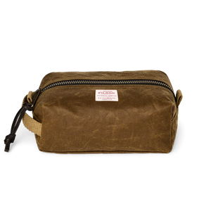 Our Tin Cloth Travel Kit is a lighter-weight dopp kit that carries travel essentials for a lifetime of journeys. It’s made with our iconic waxed canvas that’s protected foresters, sportsmen, and tradesmen from harsh weather, brush, and abrasion for more than a century. It’s fully lined with nylon to protect contents, and secures with a heavy-gauge metal YKK® zipper. The cotton-webbing grab handle doubles as a loop for hanging. Bridle Leather zipper pull.