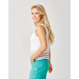 Soft and sexy this lightweight 100% organic cotton sweater tank takes you away to that special place. Pointelle details on sides bring it all home.