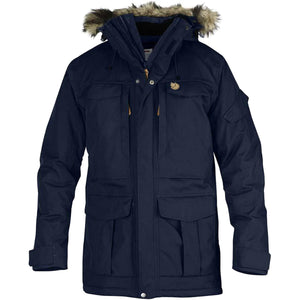 Large, parka with synthetic lining that reaches down over the rear and thighs. The perfect winter garment for changing weather conditions, it protects against the wind and rain at the same time as the Supreme Micro Loft padding keeps you warm in really low temperatures. Detachable hood with soft fleece lining and warm synthetic fur trimming that protects against snowstorms. Many practical pockets, including two large zippered breast pockets, a pocket for a media player on the sleeve and two bellow pockets with hand-warming pockets at the hem. On the inside, there are two mesh pockets, two media player pockets with openings for ear phones, safety pockets and one Napoleon pocket. Ribbed knitting at the neck keeps cold drafts out. Drawcord at the hem and long, two-way zipper with protective flap. Velcro adjustments at the sleeve cuffs.