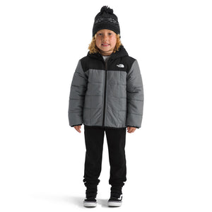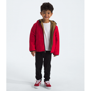 With an insulated, water-repellent outer on one side, and high-pile fleece on the other, the Kids' Boys' Reversible Shasta Full-Zip Hooded Jacket helps keep smiles on faces-even through winter's worst. The reversible design allows this jacket to quickly adapt to the weather, while a relaxed fit means they'll have room for layers either way.