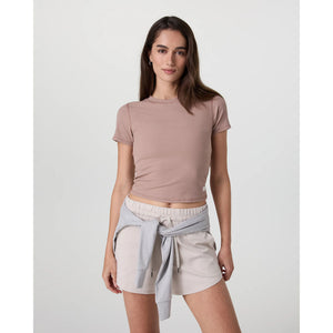 Crafted In A New Premium Modal Fabric, The Sustainable Stretch Rib Knit And Effortless High-hip Fit Of The Mudra Fitted Tee Has Stretch, And Timeless Comfort. Great For Layering In And Out Of The Studio. Great For Traveling, Training, Yoga, Hiking And Chilling.