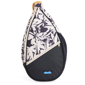 Adjustable rope shoulder strap and side release buckle, main compartment with zip closure, exterior mesh pocket, external and internal zip pockets, key clip and padded back with KAVU embroidery.